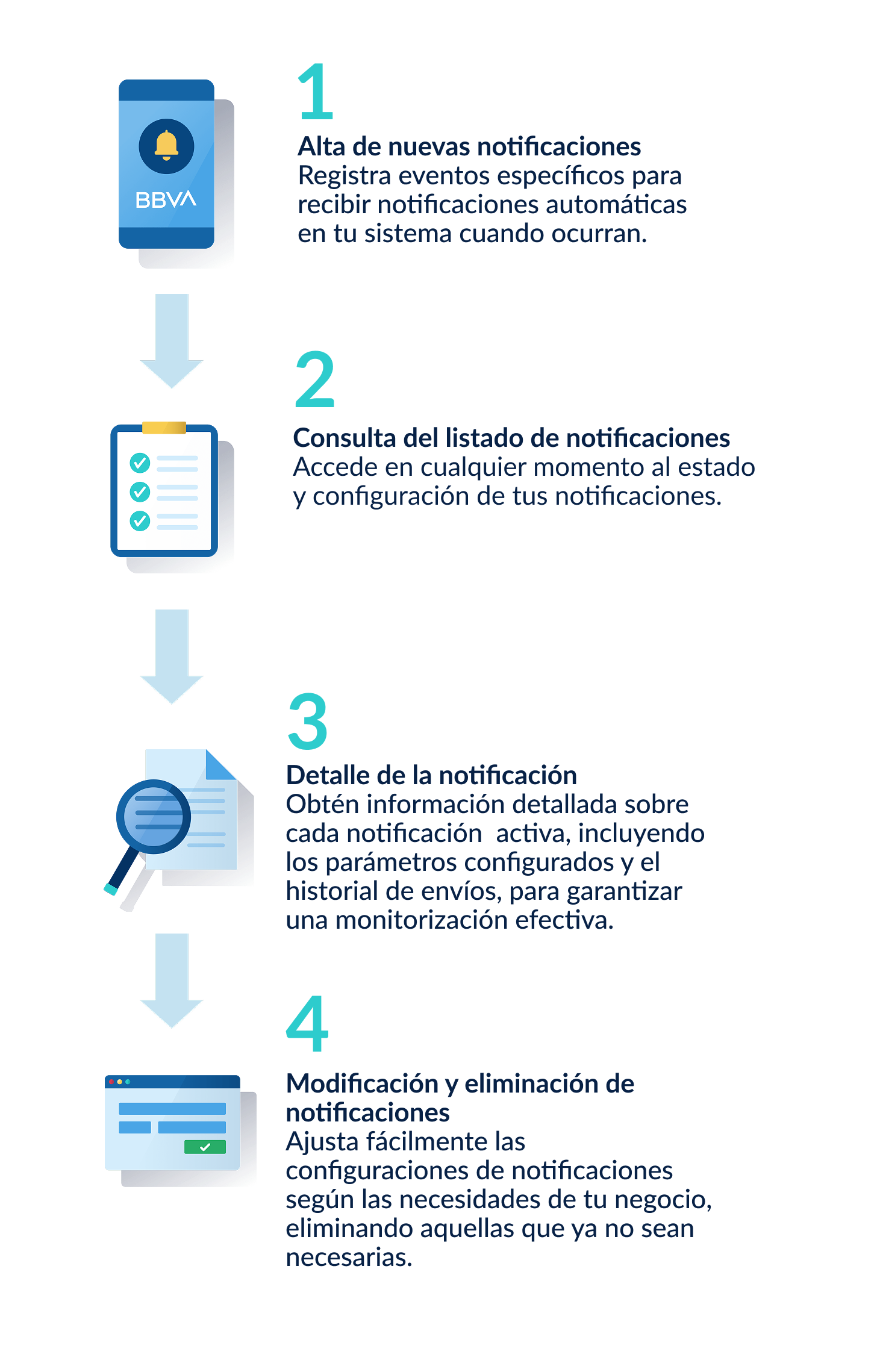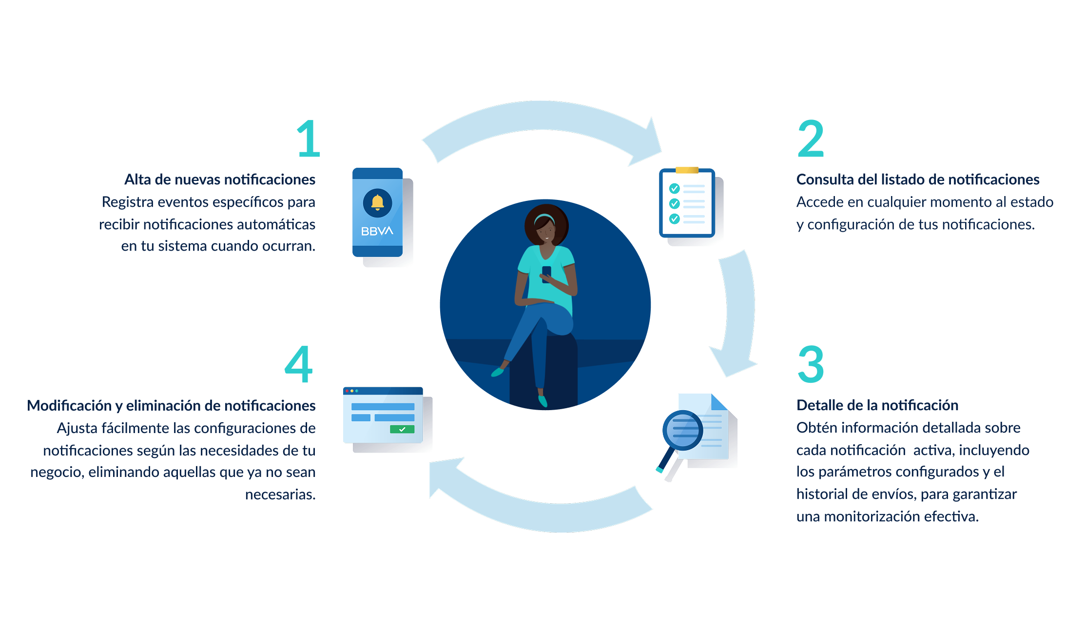 Recibe actualizaciones en tiempo real sin necesidad de hacer consultas recurrentes a BBVA.