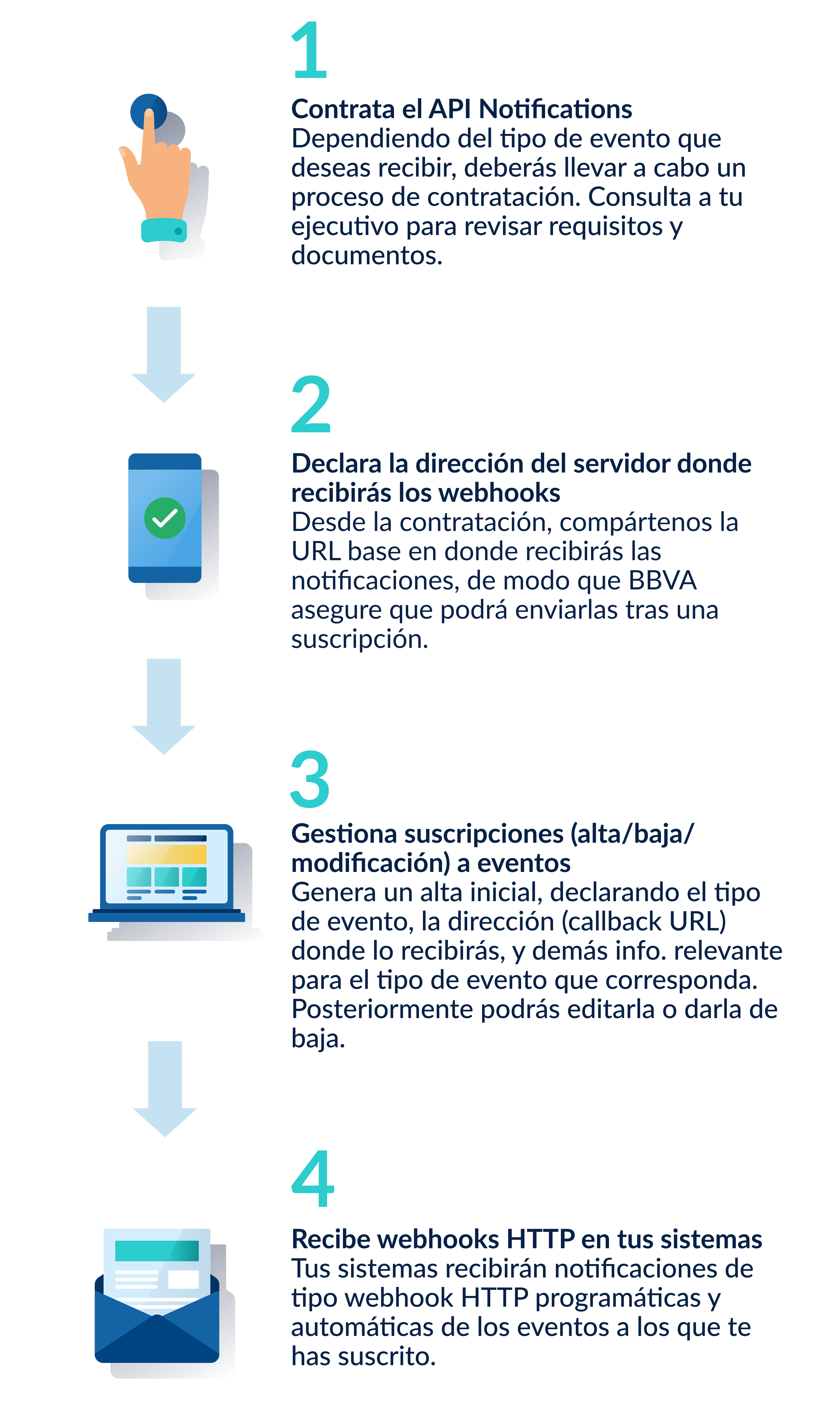 - para enviarte comunicaciones comerciales, eventos y encuestas relativas a BBVA API_Market a la dirección de correo electrónico que nos hayas facilitado.