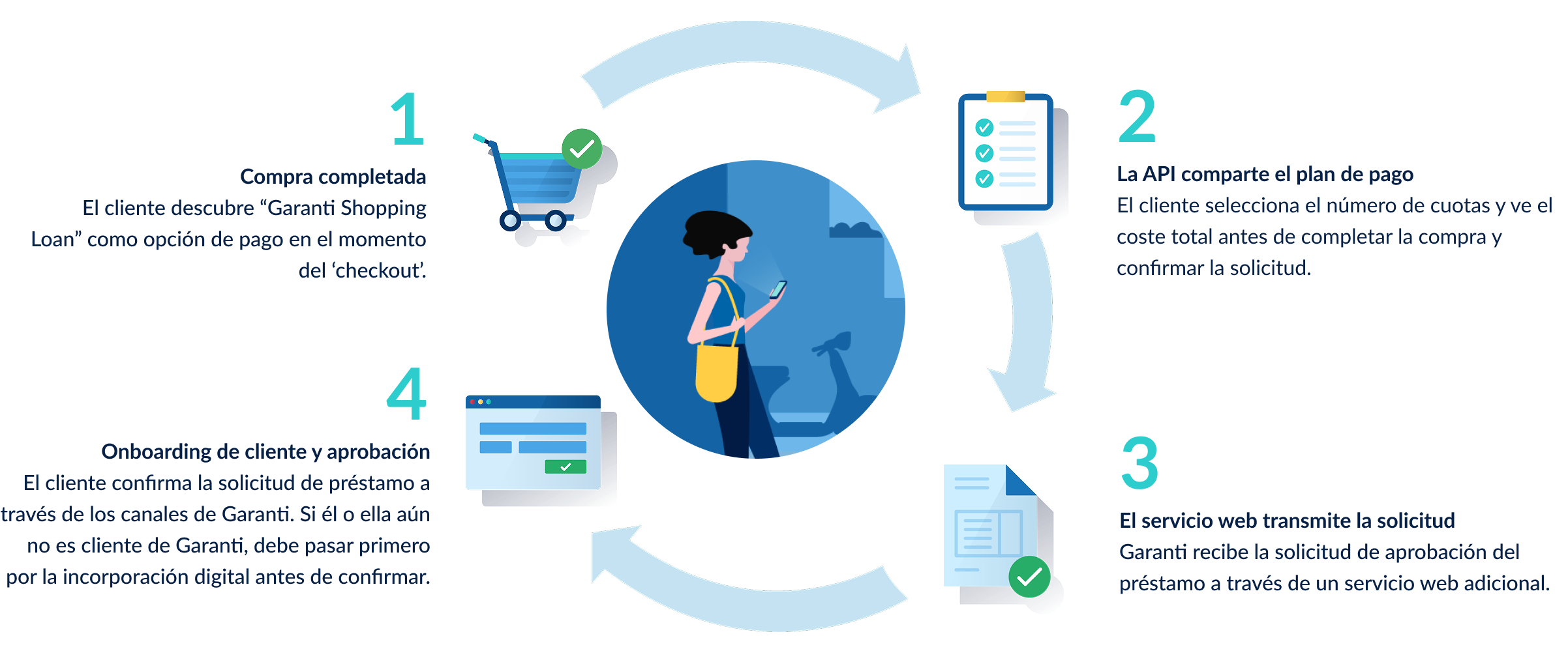 "Con la API Loan Calculator y sus servicios web asociados, puedes ofrecer préstamos a tus clientes en el momento del checkout."