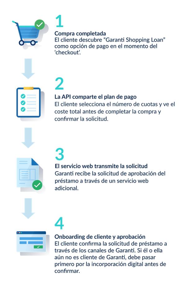 Permite a los usuarios seleccionar el pago con un Préstamo Garanti en el momento del ‘checkout’.